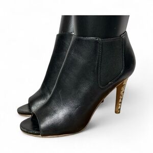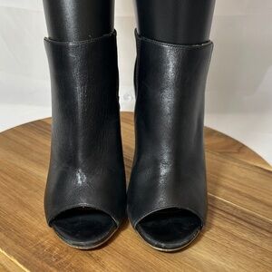 Coach Adrianna Leather Black Peep-Toe Heeled Ankle Pull On Boots Women’s 7.5 B