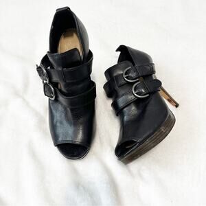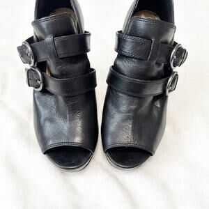 Coach Alexia black leather peep toe heels pumps size 8 sandals buckle