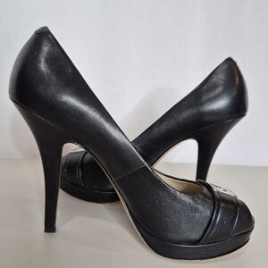 Coach Aliya Black Leather Peep-Toe Platform Stiletto High Heels - Size 7