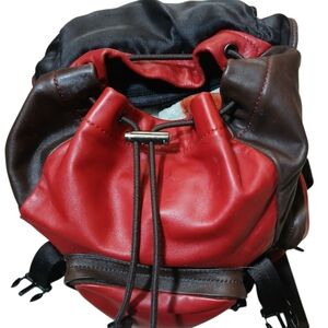 Coach All Leather Red/Brown Drawstring Buckle Flap Full Size Backpack