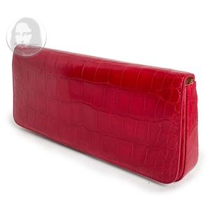 Authentic, preowned Limited Edition Coach Alligator clutch bag, from the 2001 Exotic Collection. Made from a brilliant red genuine alligator skin, it features a small card slip pocket under the flap and is lined in vachetta & sueded leather with one zip pocket inside.