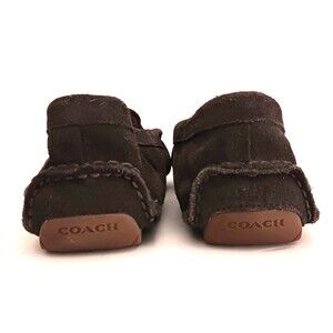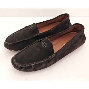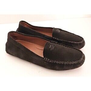 Coach Amber Dark Gray Suede Driving Moccasin Loafer Logo Rubber Sole 6.5M
