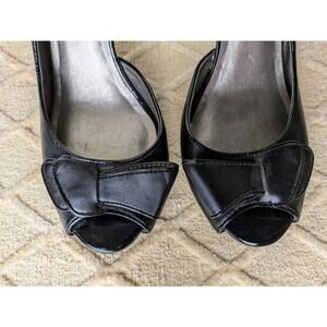 Coach And Four Black D'Orsay Peep Toe Bow Toe Stiletto 3.5" Heels Size 9