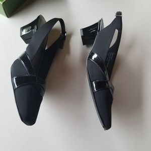 Coach And Four Black Fabric Slingback Heel Sz 8 1/