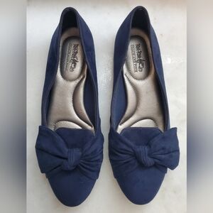 Coach And Four Deep Blue Ballet Flats with Bow Detail