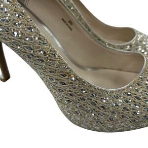 Coach And Four Gold Silver Sequin Sparkle Open Toe Heels Womens 8 AS IS