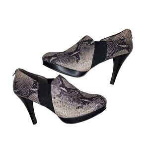 Coach And Four Heels Pumps Gray Python Print Shoe Zip Close Women's Size 8.5