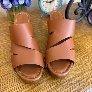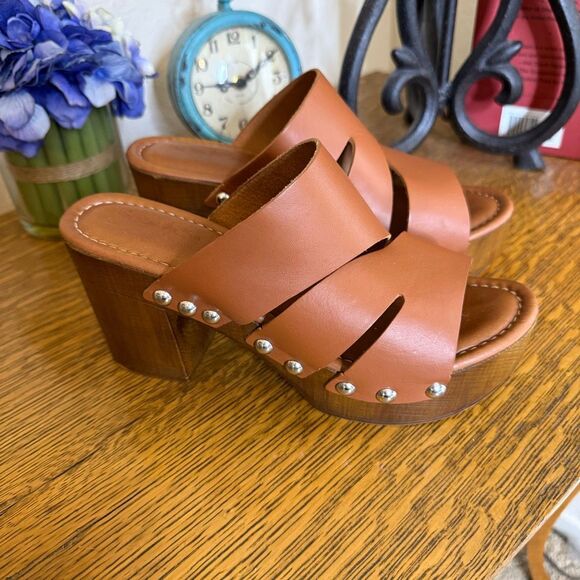 Coach And Four Vero Platform Sandal Brown Leather Studded Size 7.5 Boho