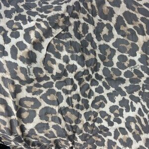 Elegant animal print scarf by Coach. Features gray and cream tones. Adds sophistication to any look.