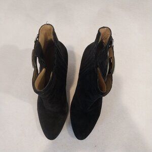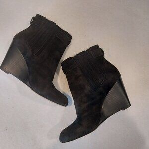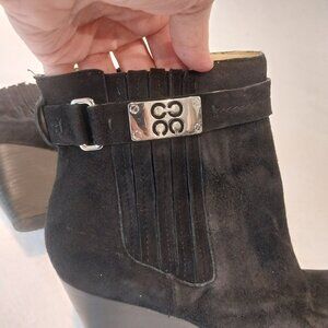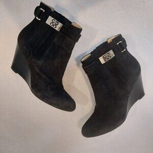 Coach Ankle Black Ankle Boots Womens 9 Wedge Letty Suede Heel Bootie Metal Logo.