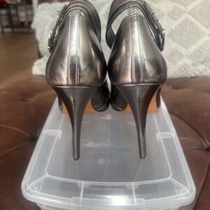 Coach Ankle Strap Metallic Silver Stiletto Heels 8.5