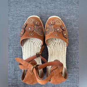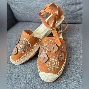 Coach Ankle Strap Astor Espadrille with Tea Rose Rivets Color Brown Size 6,5