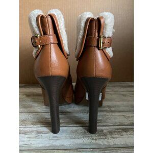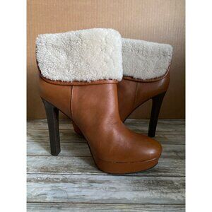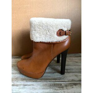 Coach Apple Boot, Coach shearling boots, Coach platform booties, tan leather ankle boots, Coach F2370 G12, Coach A7019, winter shearling boots, Coach high heel boots, fold over cuff boots, designer shearling booties