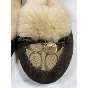 Coach Arleen Moccasins Shearling Fur Brown Slippers 9W NEW
