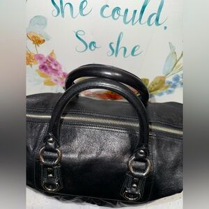 Coach Ashley Black Leather Satchel with Silver Hardware