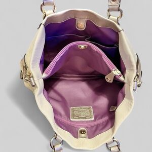 Coach Ashley Cream and Metallic Gold Leather Shoulder Bag