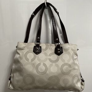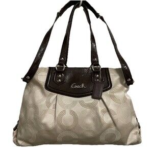Coach Ashley Dotted Op Art Convertible Satchel Shoulder Bag Khaki Mahogany