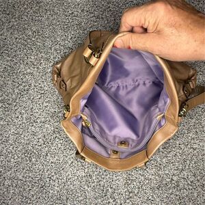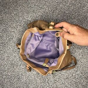 Discover the perfect blend of style and functionality with this Coach satchel, a must-have for any casual outing. Crafted from luxurious beige leather, this bag features dual top handles for effortless carrying. The spacious interior, lined in a striking purple fabric, offers ample room for all your essentials, while interior pockets keep everything organized. A secure zip-top closure ensures your belongings stay safe, and the signature Coach logo adds a touch of elegance. This pre-owned piece is ready to accompany you on your daily adventures with timeless charm.