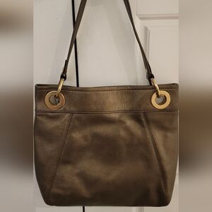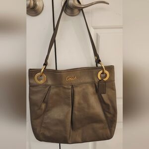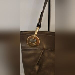 Coach Ashley Leather Hobo Bag Bronze Metallic Gold Accents Bag Charm Logo