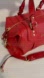 Elegant Coach red leather satchel crafted from smooth genuine leather with gold-tone hardware. Features dual top handles, a detachable adjustable shoulder strap, and a zip-top closure. The interior includes a zip pocket and slip pockets for easy organization. Classic and timeless Coach style — perfect for everyday use or a statement accessory for evening looks.