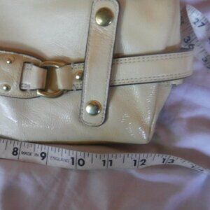 Coach Ashley Signature Print Sateen Ivory Patent Leather Canvas Handbag