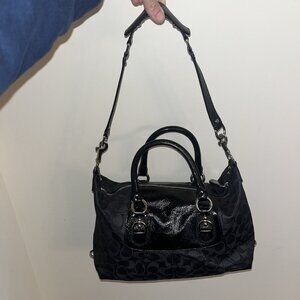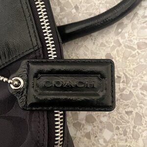 Coach Ashley Signature Satchel Bag Black C Sateen Fabric Leather Trim F15443