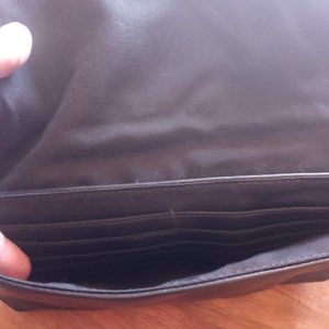 Beautiful large Coach Ashley Wristlet Wallet Clutch with Cursive Coach Logo and front flap closure