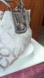 Sides have Silvertone rings for shoulder strap that is missing. I can include a shoulder or Crossbody silver tone chain if you would like, please specify
