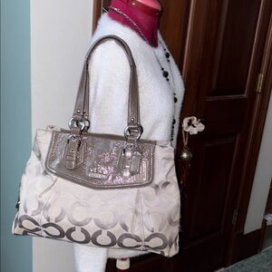 Coach Ashley satchel shoulder bag Monogram canvas light gray / dark gray EUC