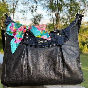 (EUC) “2012” Coach Ashley(F20104) Black Leather w/Snake Embossed Trim Tote/Shoulder Bag (includes twilly)