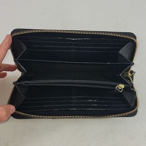 Coach Ashley Leather Wallet Accordion 3 Side Zip Black Wristlet