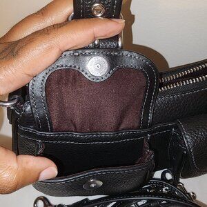 | Outside snap pockets | Detachable strap with 23 1/4" drop for shoulder or crossbody wear | 10" (L) x 4" (H) x 2 3/4" (W)|Style No. CM079|