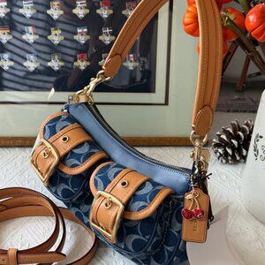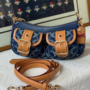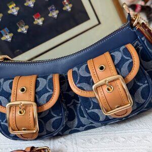 Coach Ashton Baguette Bag In Signature Canvas Denim/Brown CY700