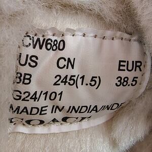 Signature jacquard and man-made leather upper Faux shearling lining and footbed Rubber outsole Slip on This Coach piece is crafted with our Signature jacquard made from a blend of regenerative cotton and recycled polyester