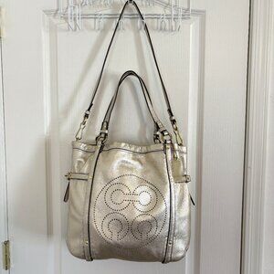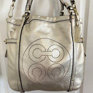 Coach Audrey Leather Andie Cinched NS Tote Bag Large Handbag 17064 Gold Metallic