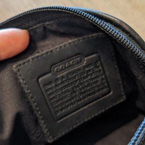 Coach Authentic cosmetic leather bag. Measurements: Ht 5 1/4" Width bottom since its longer 7", width at the top about 5 1/2" depth, at bottom 2 5/8", Clean inside and out no scratches nor rips of the inside nor the leather.