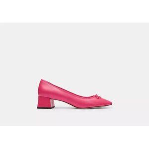 Coach Ava Bullet Pump Women's Dragon Fruit Leather Slip On Bow Accent Shoes Elevate your ensemble with the Coach Ava Bullet Pump, a sophisticated addition to any wardrobe. Crafted from premium leather in a striking Dragon Fruit color, these heels blend fashion with function. The lightweight design paired with a comfortable foam insole ensures that your feet remain at ease throughout the day, whether you're at the office or attending a cocktail party. These pumps feature a chic solid pattern and are accentuated with a tasteful bow detail, adding a touch of elegance to your outfit. With a standard shoe width and a versatile style that's suitable for various occasions, from activewear to formal events, the Coach Ava Bullet Pump is a must-have for the modern woman who appreciates both comfort and style.