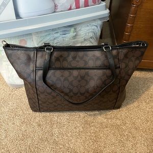 Coach Baby Bag GUC. Few spots on bottom as seen in photos (haven’t tried to clean). No fraying on strapless. Baby bag or work bag. Shoulder strap included