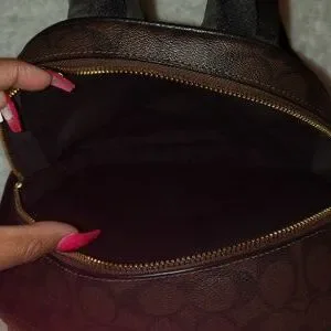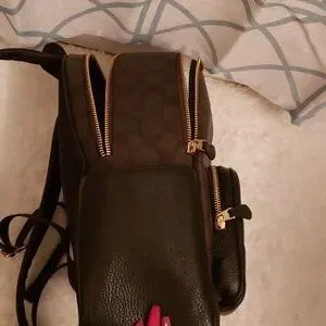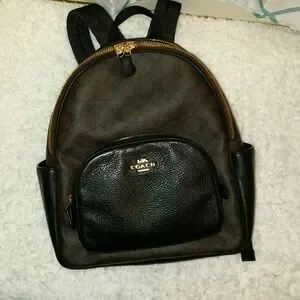 Coach IM/Brown/Black with gold hardware medium size backpack. Leather w/ mesh back and straps. Fairly used in 9/10 condition, kept in plastic and original packaging. Cute and very girly, can be used for regular day out/traveling/work. Comes from a smoke/pet free home, selling bcuz looking for something else. Open to offers.
