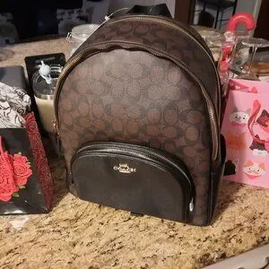 Signature Black & Brown Large Court Backpack . Double zipper . Coach tag on inside & back of backpack . Supercute 🩵 ! . Great for work , school , self or gifting 🎁 💝
