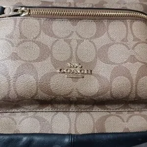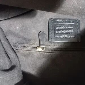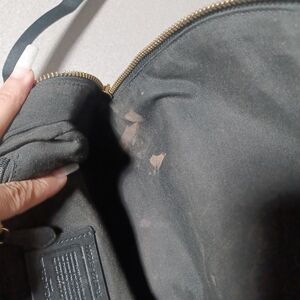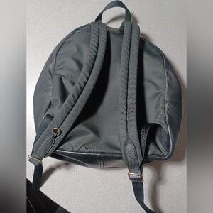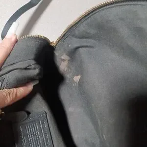Coach backpack. The exterior is in great condition, however there are a couple stains on the outside and several makeup stains on the inside of the bag as shown in the photos.