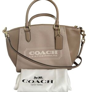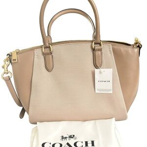 Coach Badge Jacquard Elise Satchel & Crossbody in Chalk Taupe Gold Hardware NWT