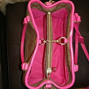 I love this purse but I just never wear brown so its looking for a new home that will give it lots of love. It is very spacious with lots of storage pockets. It also has small handles as well as a long strap that is detachable. It is in brand new condition because it has been carried only a handful of times but I do not have the tags