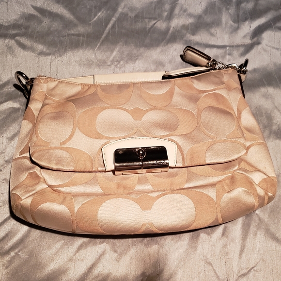 Coach shoulder bag, excellent condition, only used a couple times. Cream Colored and pink lining