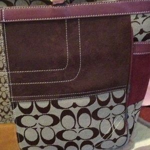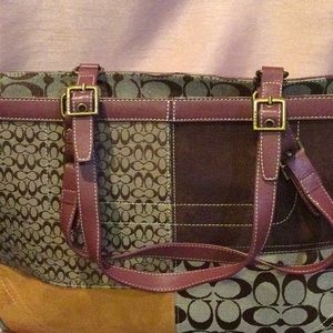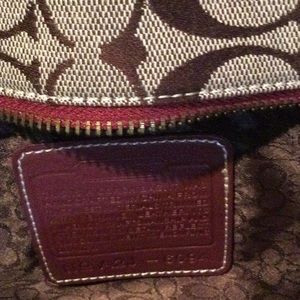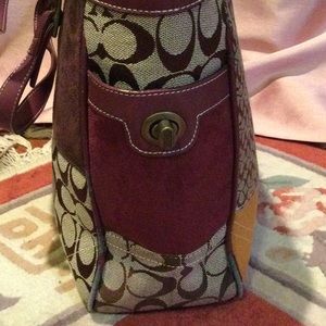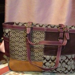 Beautiful maroon & brown patterned Coach bag, used only once, some tear & wear