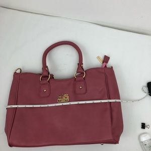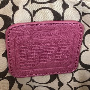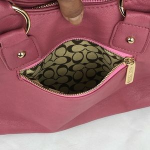 Pink coach bag very roomy good condition has 1 pocket in the back and nice handle to carry , plenty of pockets inside good condition as well