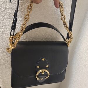 Crafted from luxurious glovetanned leather, this stunning Coach bag combines style with functionality. It features inside zip and snap pockets for organized storage, a secure snap closure, and fabric lining. The outside open pocket provides quick access to your essentials.