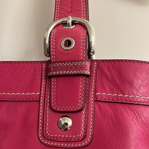Used Coach shoulder bag. Not perfect but perfectly imperfect. A few blemishes on the bag. See pictures. I think you will be happy with this bag. Get it before it’s gone.