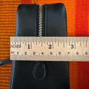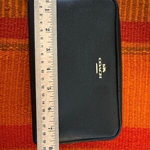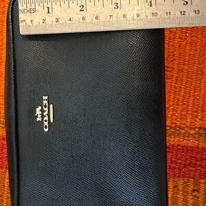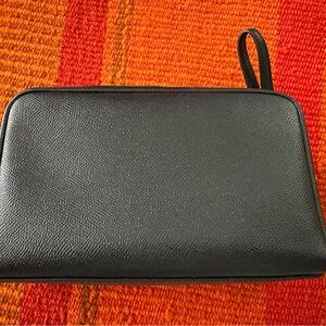 Elegant Coach toiletry bag in black. Perfect for travel essentials. Features signature logo.