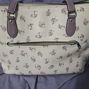 Gorgeous Coach Gallery Tote in silver chalk multi floral print. One outer zip pocket, zip top close, one inner zip pocket and two inner pockets. Very gently used, smoke-free home.